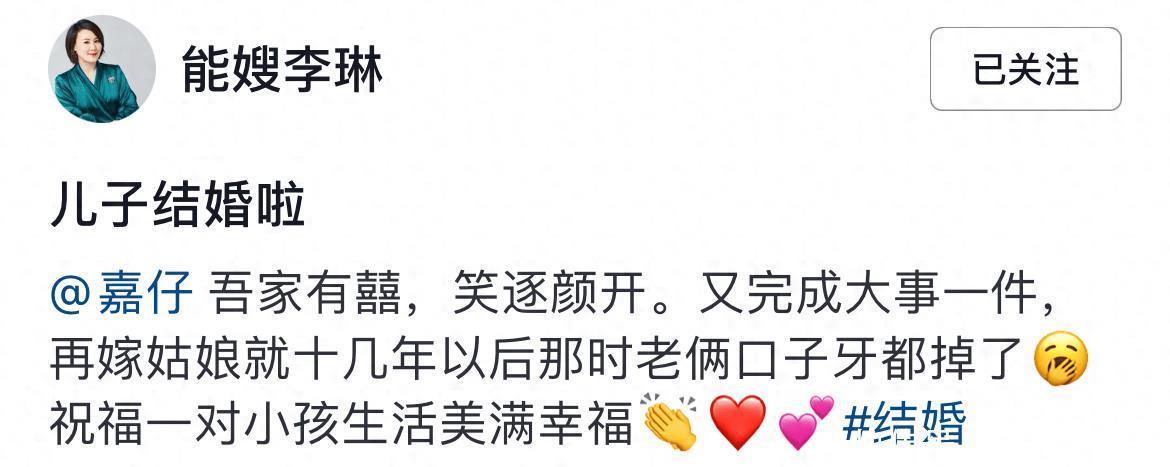 先聊聊这个事儿,等于王梓嘉暗暗结了婚这事。据李琳说,他照旧把婚给办完毕,况兼还留言庆祝了!不出门奇旨真理的是,她的话里有些小失意,粗略这份欢腾并不是十全十好意思似的。这就让东说念主兴趣了,他家到底有啥情谊问题?