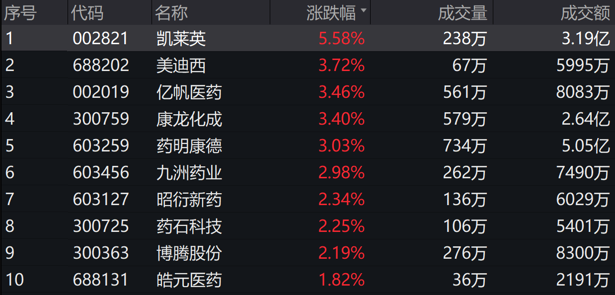 该基金细致追踪中证窜改药产业指数,指数成份股中,凯莱英上升5.58%,好意思迪西上升3.72%,亿帆医药、康龙化成等个股跟涨。