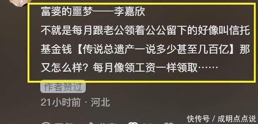 此外,张兰还在评论区点赞了网友的动态,表态了汪小菲婚后财产问题。很显着她将效仿香港富豪许世勋,亏欠后建树遗产信赖,让汪小菲和马筱梅每月像领工资相通领取。